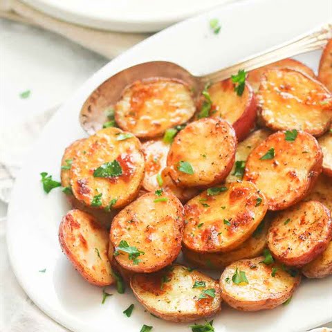 Cho vào lò khoảng 15 phút, khoai chín vàng nâu 1 mặt thì lấy ra đảo, trở mặt kia. Nướng tiếp đến khi khoai vàng đều.